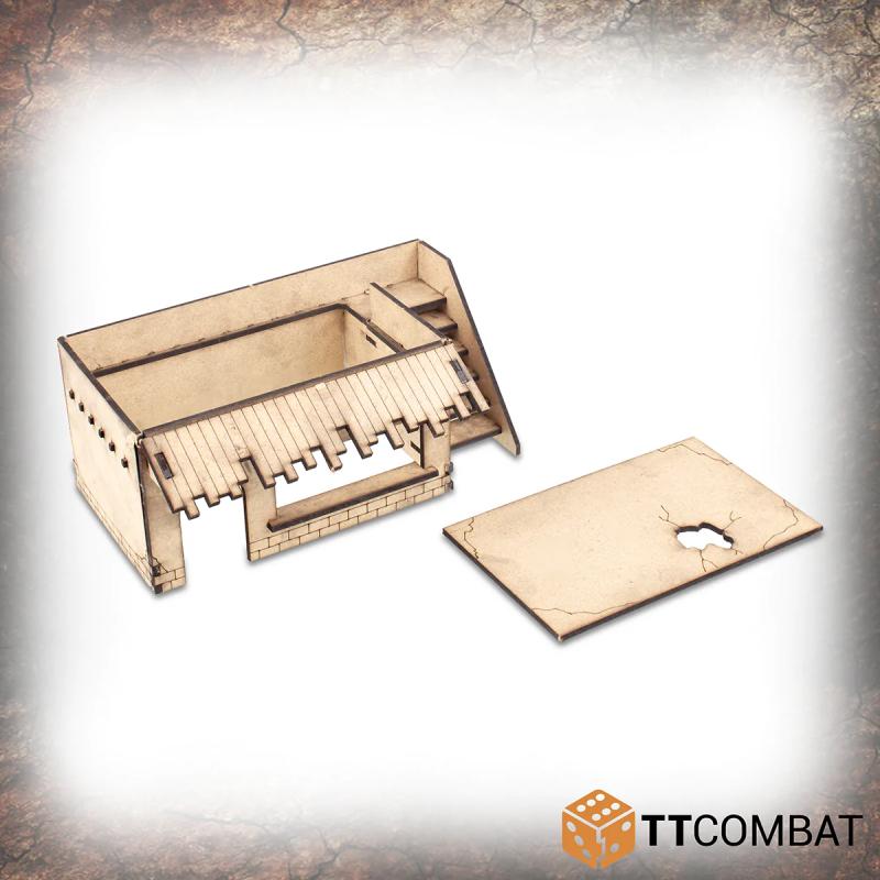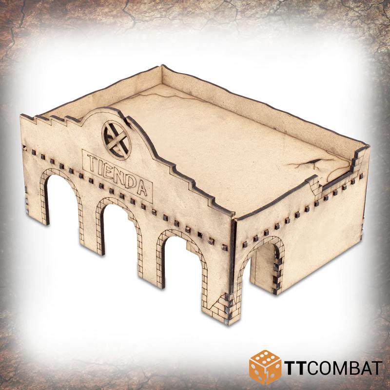 The Mexican Calle Principal is a set fit for both narrative and competitive play. Designed for the Wild West range, it features plenty of line of sight blocking features such as raised roof lips and open windows. The roofs are removeable allowing for interior play.